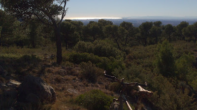 Es curioso, el tenue rumor de los neumaticos sobre la pista forestal resulta casi un escandalo en medio de la soledad de la Sierra Calderona. Voy remontando por Campillo y echando miradas a las cimas y a los pinares, hace días que el sol tiene otro brillo, hace días que la atmósfera está distinta, mas nítida, más limpia, es como si la calima y la humedad marina se fuesen diluyendo, como si intuyesen la llegada del otoño.